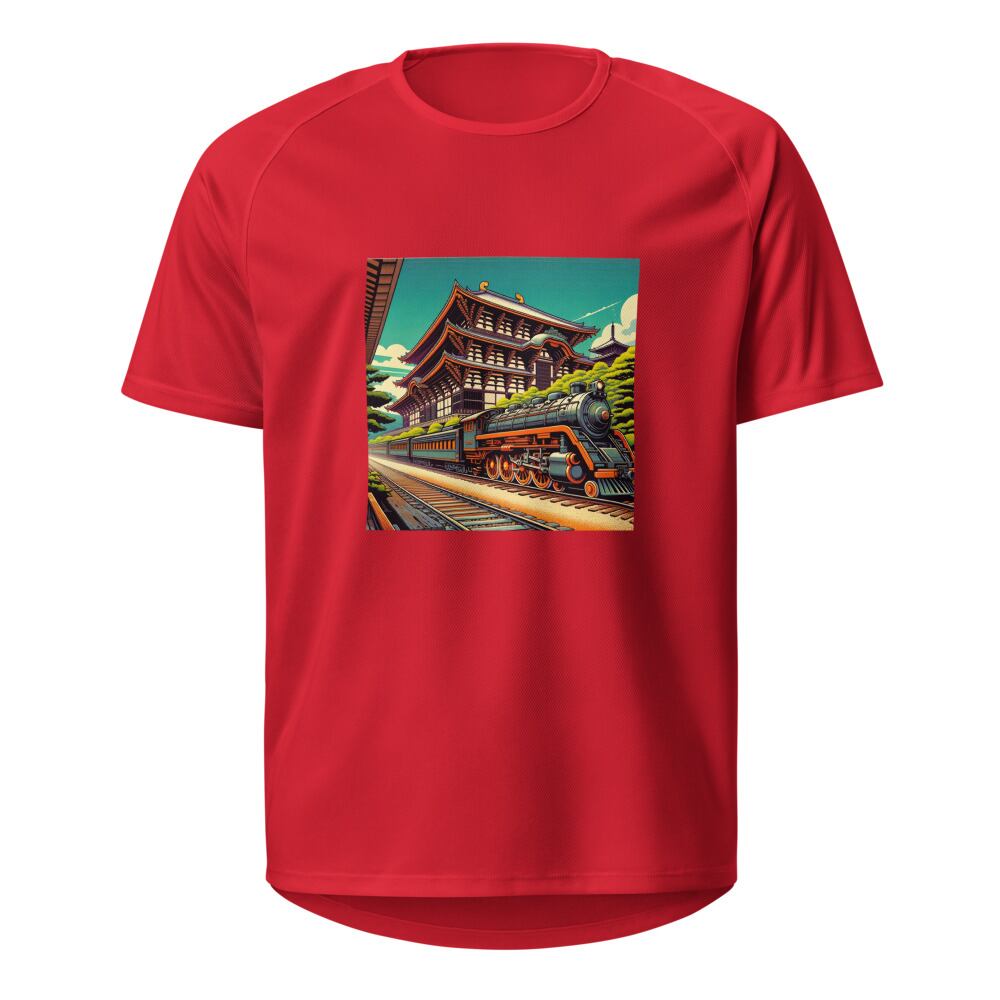 機関車が日本を走るTシャツ04 ユニセックススポーツシャツ-p